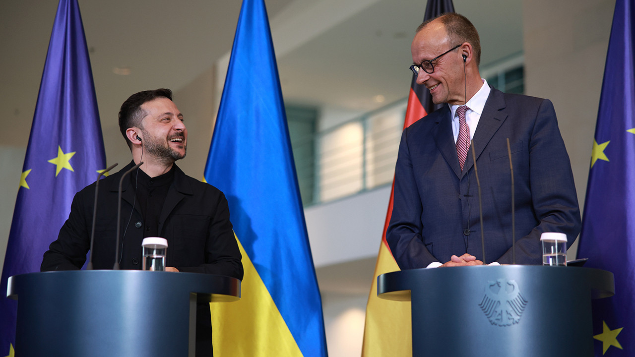 Almanya Başbakanı Friedrich Merz, başkent Berlin'de Ukrayna Devlet Başkanı Vladimir Zelenskiy'i ağırladı. Merz ve Zelenskiy, Başbakanlık binasında gerçekleşen görüşmede Ukrayna-Rusya savaşındaki son durumu, Avrupa güvenliği ve iki ülke ilişkilerini ele aldı. İki lider görüşmenin ardından kameraların karşısına geçti.