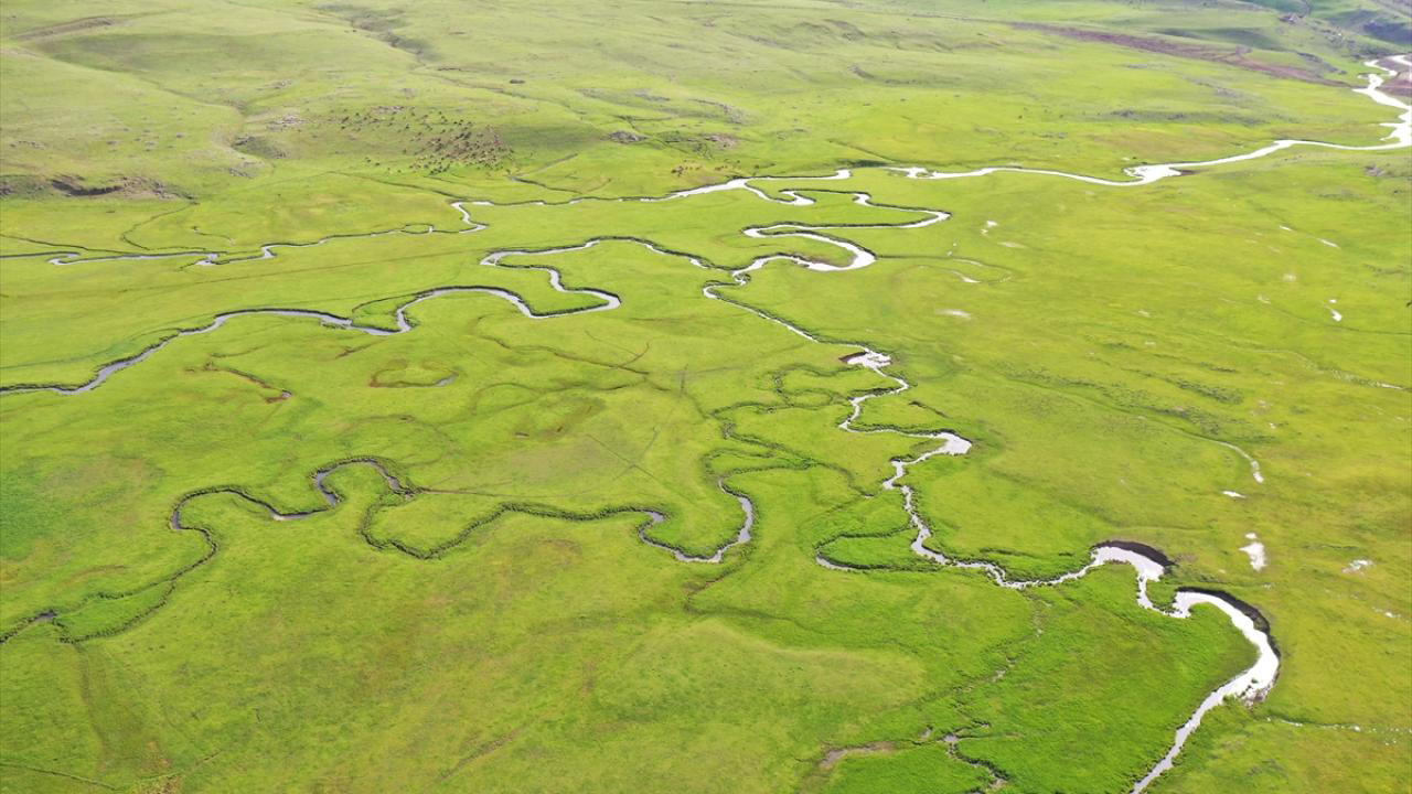 Bulunduğu ovalara can suyu veren menderesler, dronla görüntülendi.