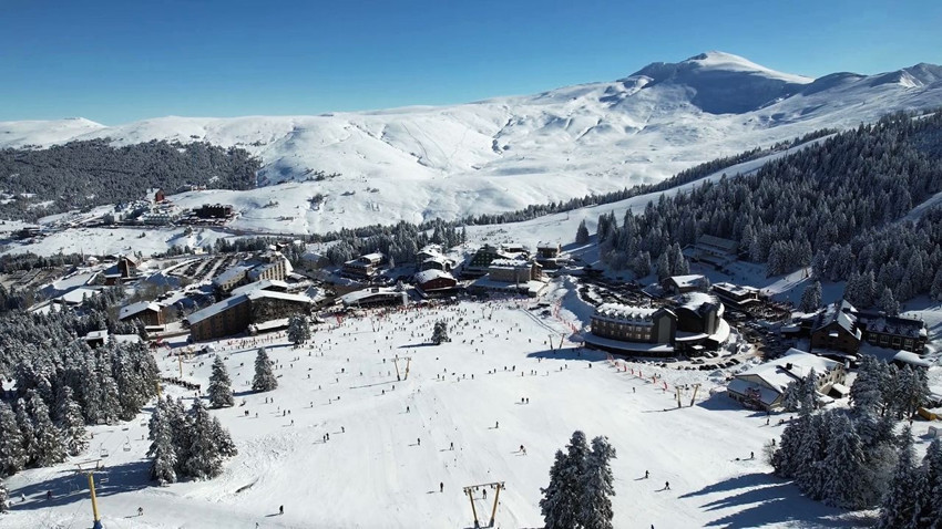 Drone görüntülerinde, Uludağ'daki yoğunluk net bir şekilde gözler önüne serilirken, kar manzarası ve pistlerdeki hareketlilik kış turizminin canlılığını bir kez daha ortaya koydu.