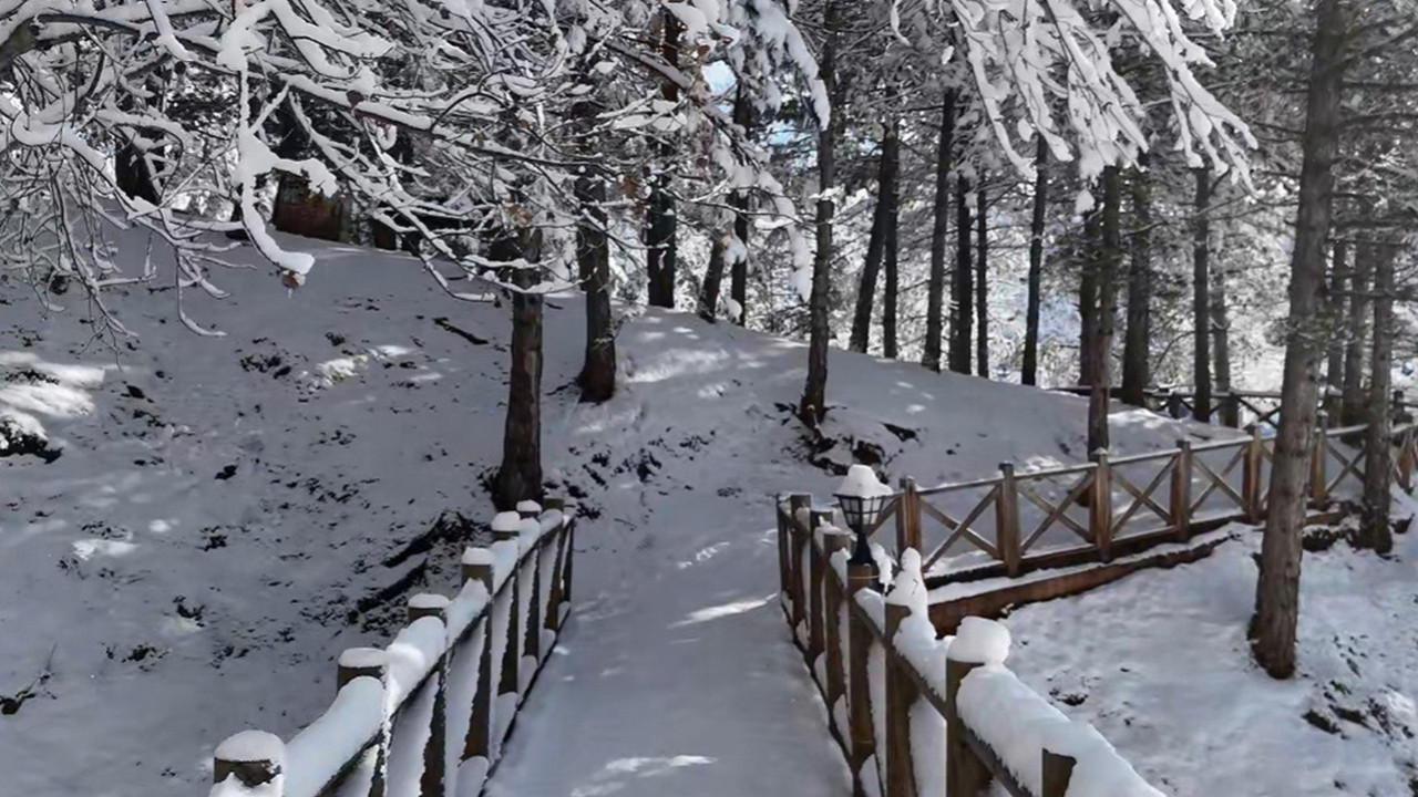 Ağaçların dallarındaki karlar zaman zaman güneş ışığının da yansımasıyla doğanın gücü ve güzelliğini hatırlattı.