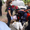 Yağışlı havadaki trafik kazası sonrasında yaralılara şemsiyeli müdahale...