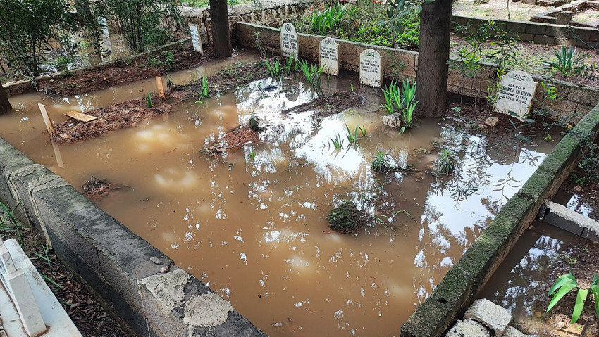 Yağmur bir kez daha aynı mezarlığı göle çevirdi; vatandaş isyan etti!