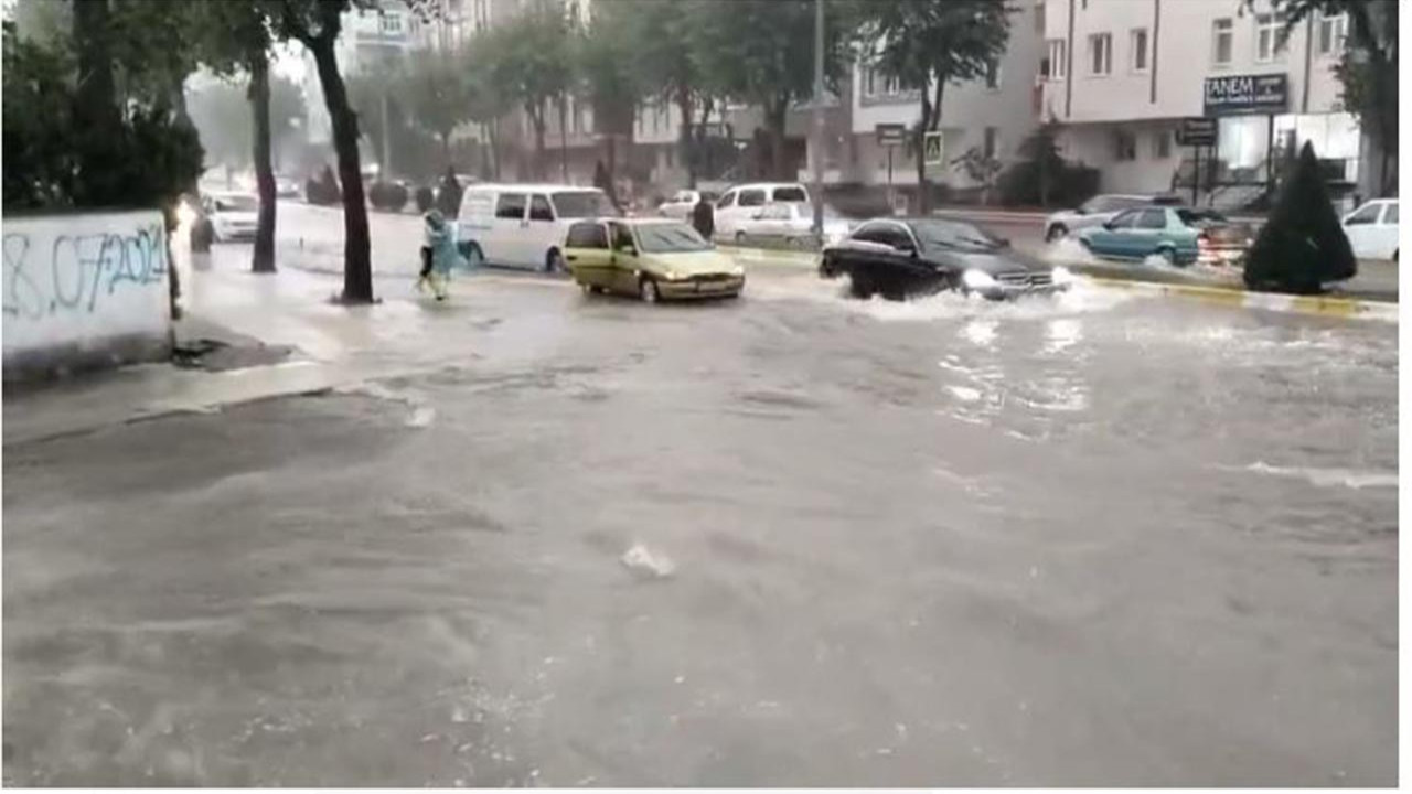 Çorum'da aniden bastıran sağanak yağış ve dolu nedeniyle bazı cadde ve sokaklar göle döndü. Sürücüler yoğun su birikintisi nedeniyle araçlarında mahsur kaldı. Bazı araçlar ise güçlükle ilerledi. Çok sayıda ev ve iş yerlerini su bastı.