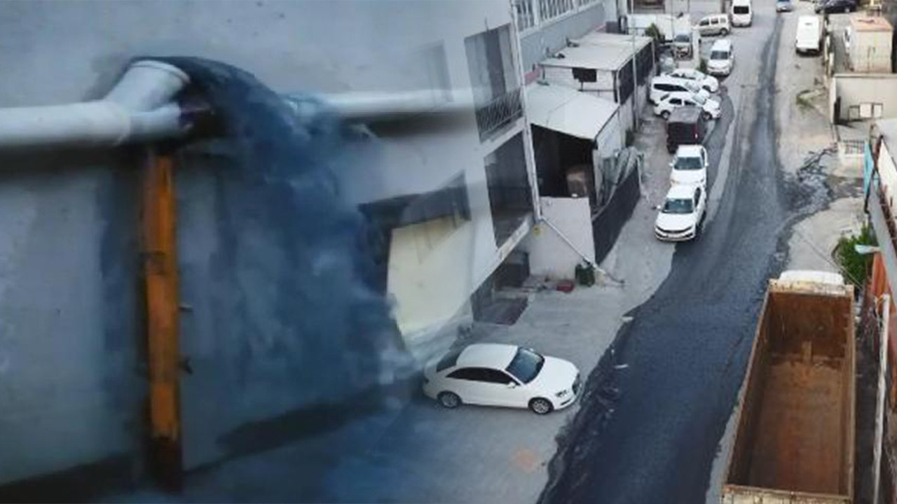 İstanbul Esenyurt'ta fabrikaların bulunduğu sokakta, kot taşlama atölyesinden bırakıldığı belirtilen mavi renkteki atık su, boruların patlamasıyla sokağa taştı. Bölge halkı, sokak hayvanlarının atık suyu içtiğini ve telef olduğunu belirtti.