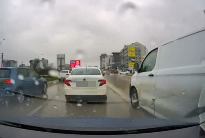 Bursa’da trafikte yaşanan "yol verme" gerginliğinde seyir halindeki bir minibüsten inen 3 şüpheli bir otomobil sürücüsüne saldırdı. O anlar araç kamerası tarafından saniye saniye kaydedildi.