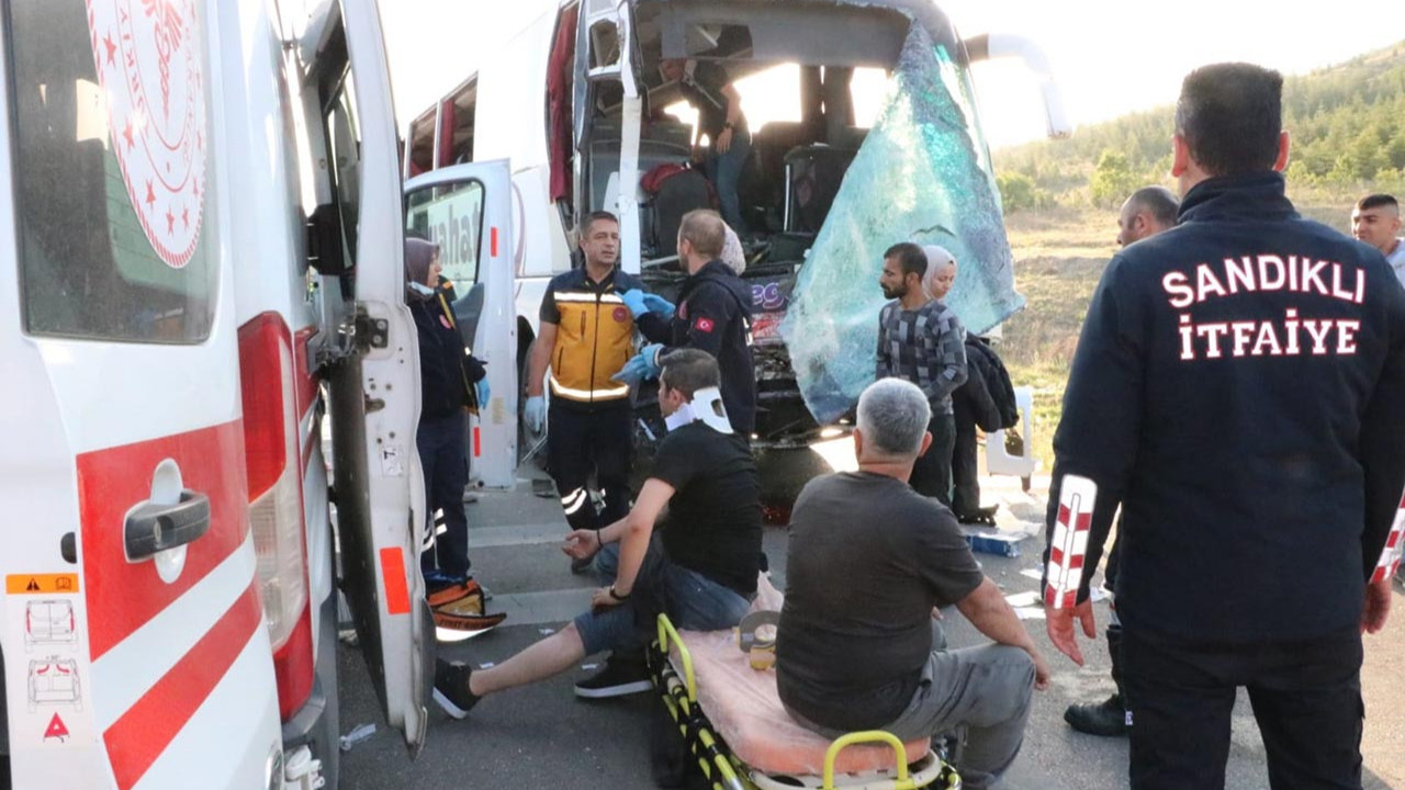 Afyonkarahisar'da yolcu otobüsü ile kamyonetin çarpıştığı kazada 3'ü ağır 17 kişi yaralandı.