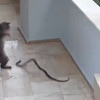 Apartmanın önünde duran bir sokak kedisi, yakındaki yılanı fark ederek saldırıya geçti. Kedinin patisiyle uzaklaştırmaya çalıştığı yılan ise kendini savunmaya çalıştı.