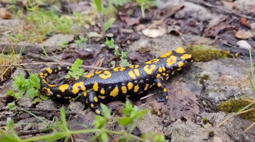 Erzincan’ın Kemaliye ilçesinde doğa fotoğrafçıları, dünya genelinde nesli tükenme tehlikesiyle karşı karşıya olan ve koruma altında bulunan "sarı benekli semenderi" görüntülemeyi başardı.