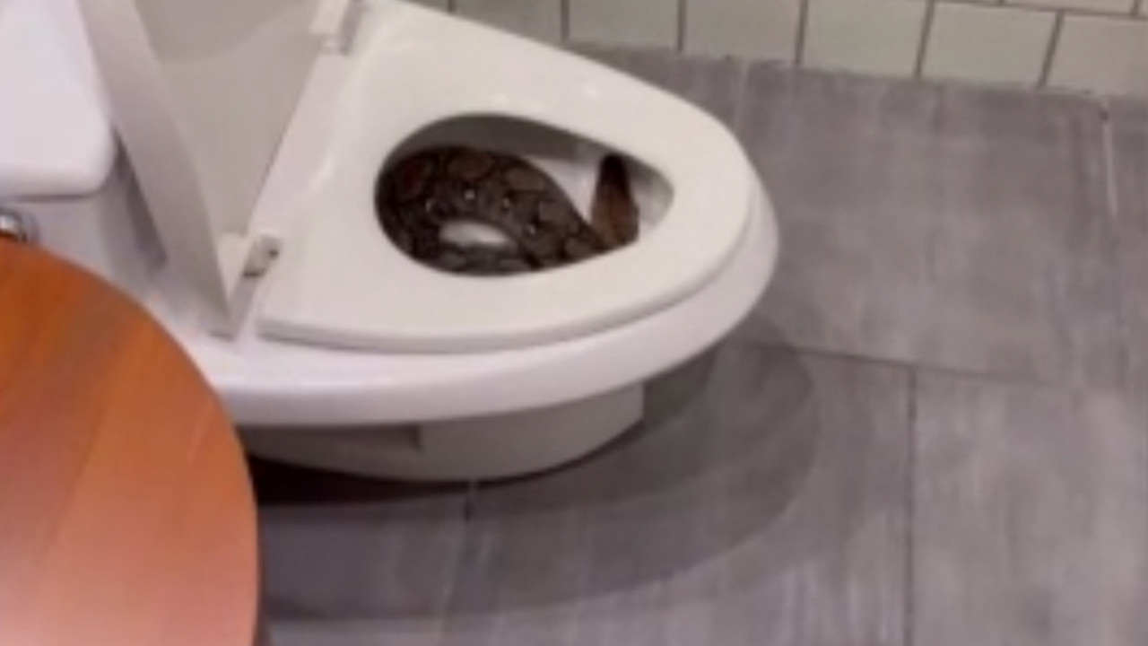 Klozetin içindeki dev piton ev sahibinin aklını aldı