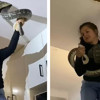 Kısa bir süre içinde olay yerine gelen profesyonel ekipler yılanı yakalamak için yeterli alan olmadığını fark etti. Ancak kadın uzman diğer arkadaşlarıyla aynı fikirde değildi. Mutfağın tepesine kare şeklinde bir delik açan kadın, ufacık delikten devasa yılanı aşağı doğru çekmeye başladı.