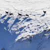 Görüntülerde, çengel boynuzlu keçilerin dik yamaçlarda çevik hareketlerle ilerlediği ve karla kaplı kayalıklar arasında besin aradığı anlar net bir şekilde yer aldı.