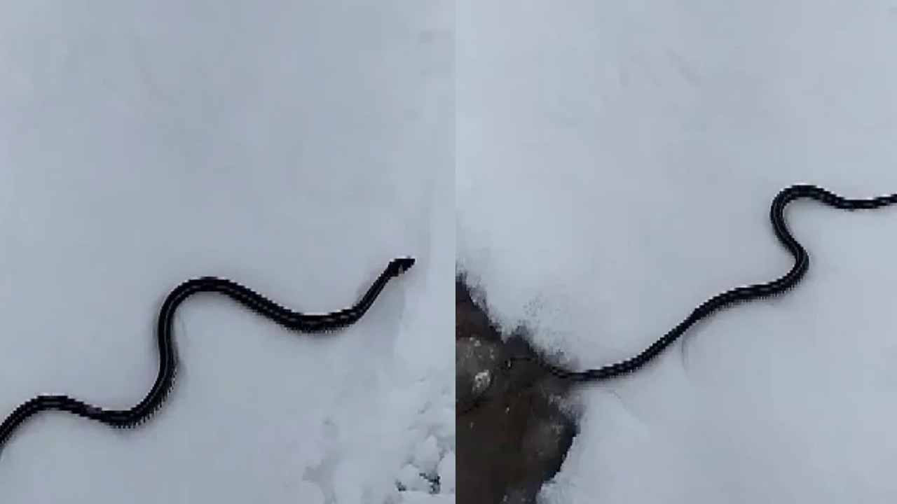 Şubat ayında kar üzerinde görülen siyah aktif küpeli su yılanı (natrix natrix) Muş Bulanık’ta Adem Şamiloğlu tarafından görüntülendi. Uzunluğu 1 metreden fazla olan yılanın görüntüsünün kendilerini oldukça şaşırttığını dile getiren sürüngenler uzmanı olan Adıyaman Üniversitesi Fen Edebiyat Fakültesi Biyoloji Bölümü Öğretim Üyesi Prof. Dr. Mehmet Zülfü Yıldız yılanların kış aylarında görülmesinin küresel ısınmaya bağlı olabileceğini dile getirdi.