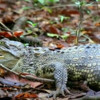 Uzak Doğu'da kayda alınan görüntülerde iki arkadaş ormanda yürüyen timsahı gözüne kestirdi.