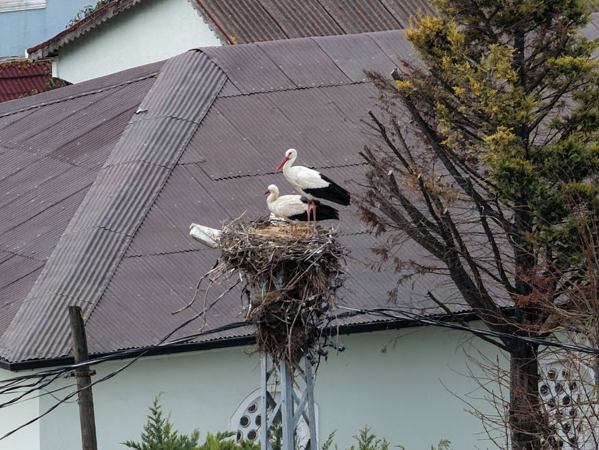 Göç eden leylekler, geçen yıl kullandıkları yuvalarına geri dönerek yerleşmeye başladı.