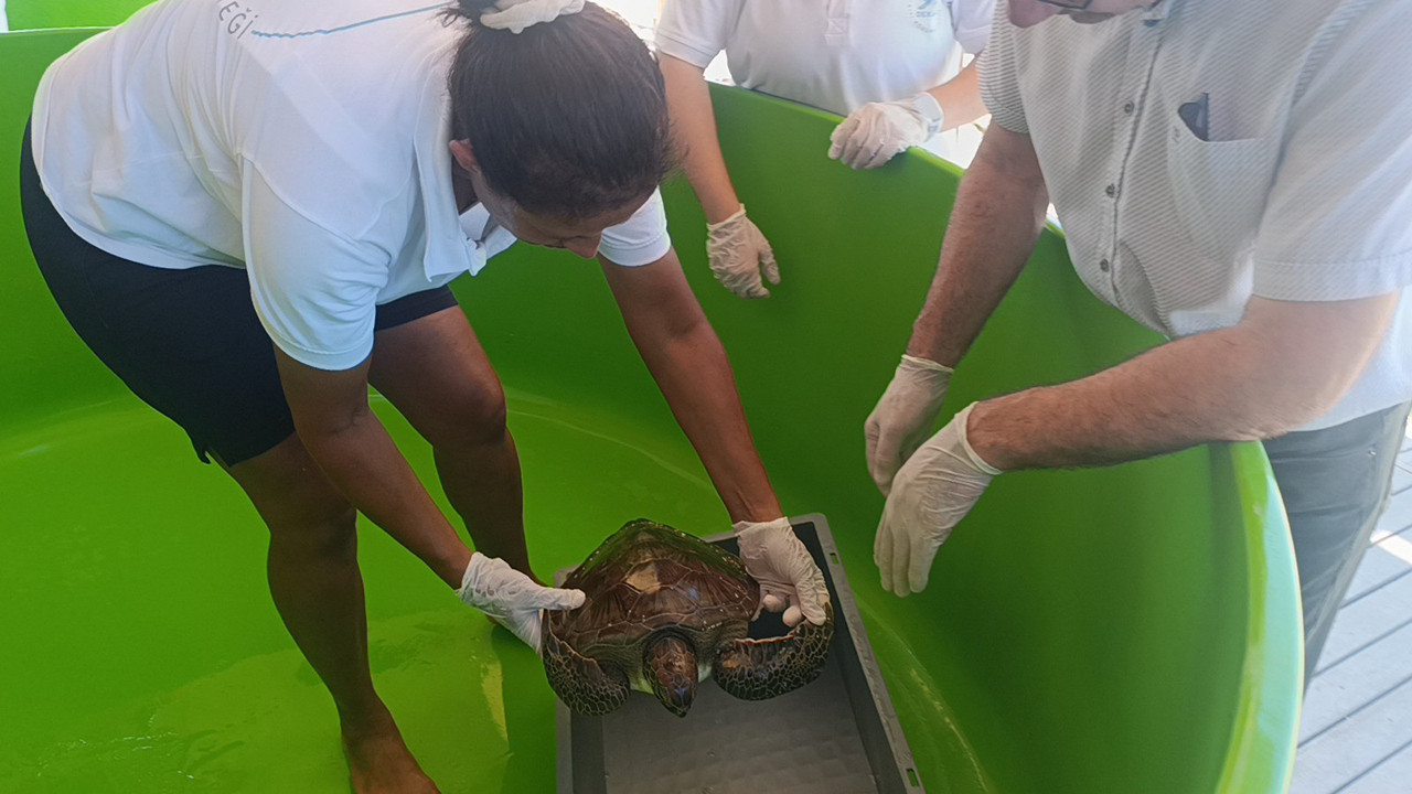 İhbar üzerine bölgeye giden DEKAFOK Başkanı Seher Akyol ve ekibi, üzerine file ve çuval dolanması sonucu lenfleri zarar gören Yeşil Deniz Kaplumbağasını bulunduğu yerden alarak Manavgat’taki DEKAFOK Eğitim ve Araştırma Merkezi’ne ulaştırdı. Burada antibiyotik müdahalesi yapılan kaplumbağanın önümüzdeki günlerde operasyon geçireceği, sağlığına kavuşmasının ardından ise denize bırakılacağı bildirildi.