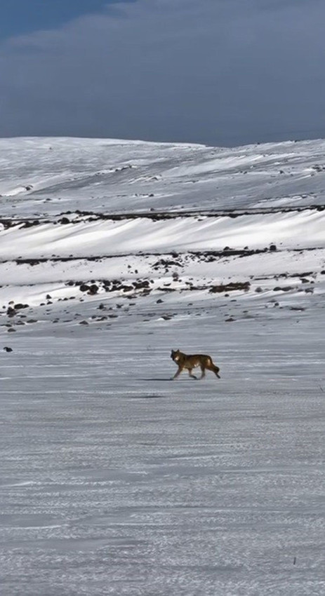 Bir süre aracı takip eden kurt daha sonra karlı arazide gözden kayboldu. Görüntüler sosyal medyada hızla yayıldı.