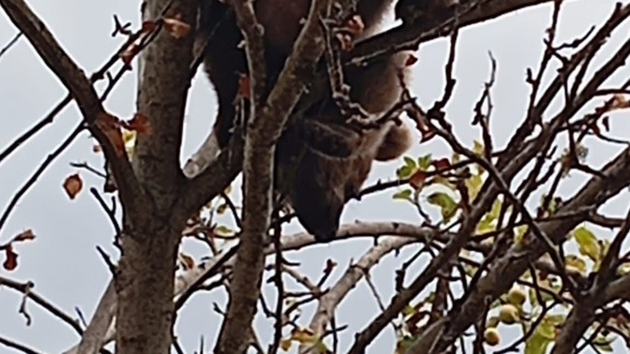 Karabük'ün Merkeze bağlı Kamış köyünde çıktığı elma ağacında mahsur kalan yavru ayıyı görenlerin ihbarı üzerine Karabük İl Özel İdaresi Çevre Koruma ve Kontrol Müdürlüğü ekipleri geldi.