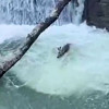 Zonguldak'ta buz gibi derede yüzen karaca kameralara takıldı