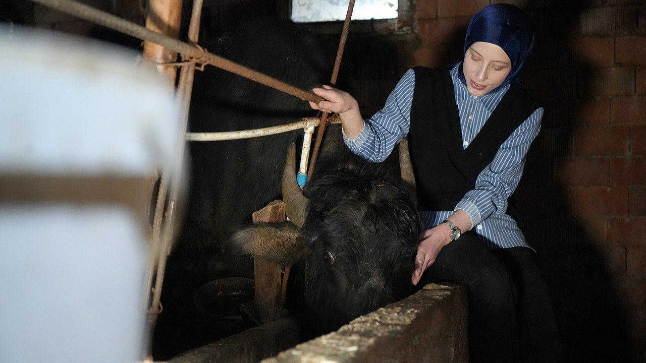 Bayburtlu genç kadın girişimci Şafak Eraslan, devletten aldığı 100 bin liralık hibe desteğiyle manda çiftliği kurarak hem üretime katıldı, hem de ev ekonomisine katkı sağladı.
