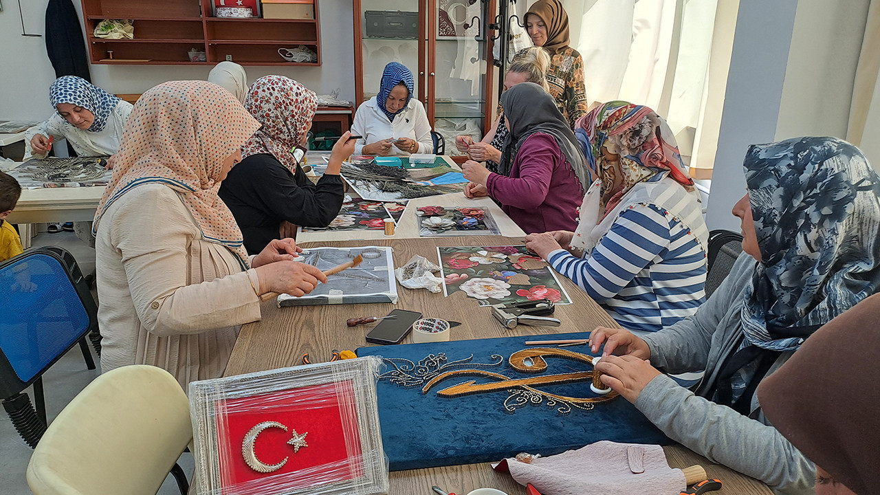 Sakarya'da filografi kursuna katılan kadınlar hem sanatın inceliklerini öğreniyor hem de hobilerinden para kazanıyor.