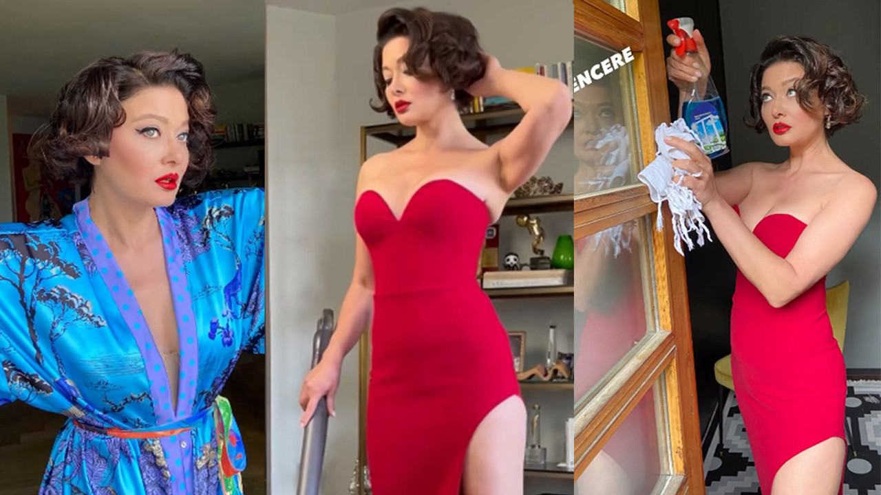 Birbirinden ateşli kıyafetlerle bir temizlik videosu paylaşan Nurgül Yeşilçay hem gülmekten kırdı geçirdi hem de güzelliği ile mest etti.