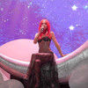 İddialı ve cesur seçimleriyle adından sıkça söz ettiren ünlü popçu bu defa kurdele şeklindeki pembe sütyen tarzı büstiyeri ve düşük bel uzun pembe eteğiyle çok konuşuldu.