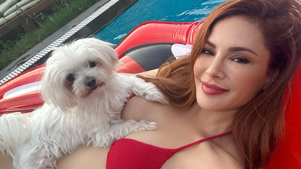 Mine Tugay köpeğiyle havuz keyfi yaptı; sosyal medya yıkıldı