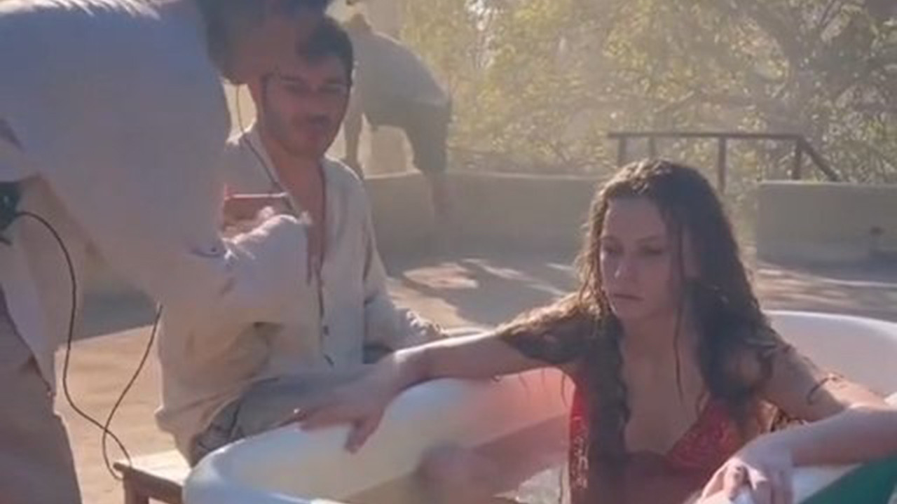 Şahmaran'daki küvet sahnesinin çekildiği anları paylaşan oyuncu bir kez daha hayranlık uyandırdı.