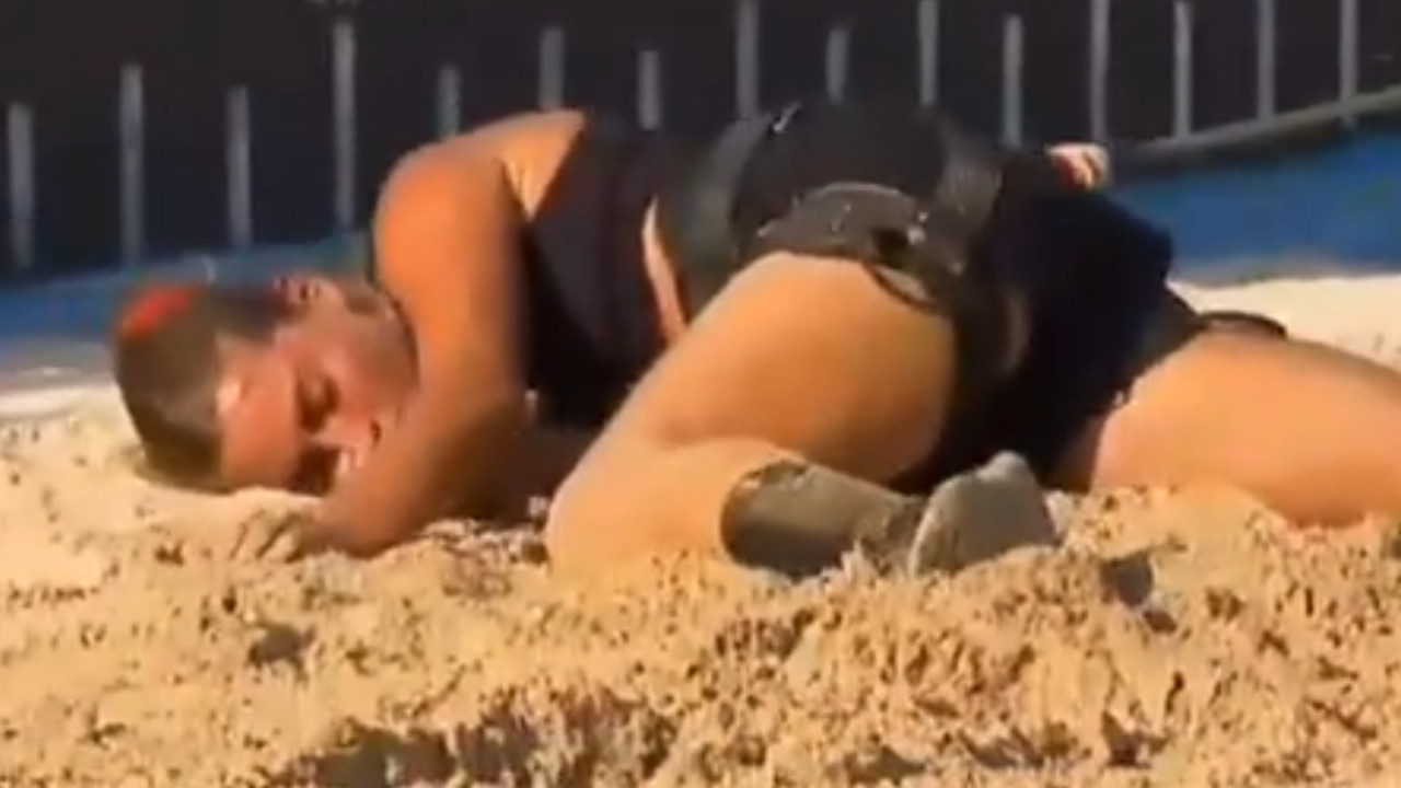 Yağmur ile Almeda'nın mücadele ettiği parkurda Yağmur bir anda bayıldı.