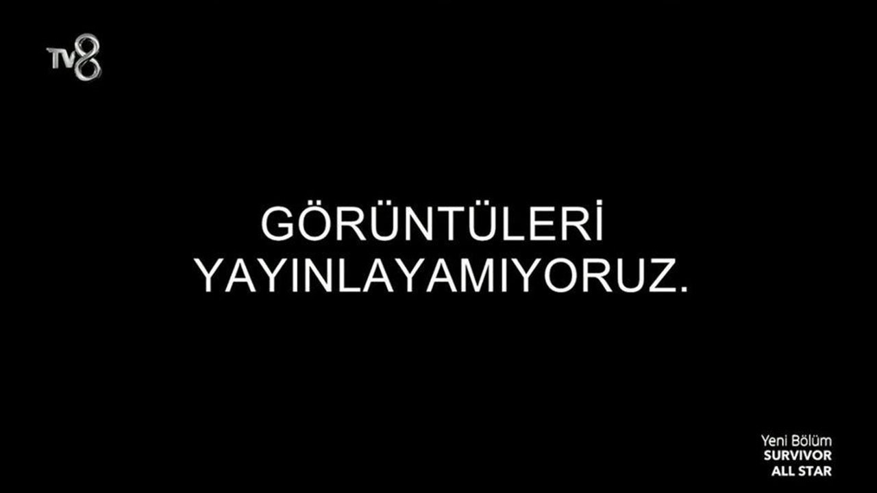 Yaşanan aşk, dedikodu ve kavgalarla büyük tepki çeken Survivor All Star yarışmasında bu sefer kıyamet koptu. TV8 kanal yönetimi ekrana "görüntüleri yayınlayamıyoruz" uyarısı koydu.