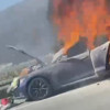 Bursa'da yolda seyreden Tesla alev topuna döndü