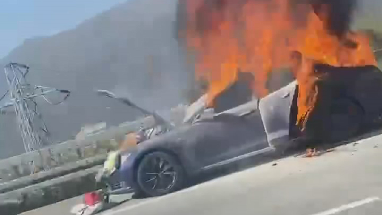 Sürücü, otomobili emniyet şeridine çekti. Bir süre sonra alev alan otomobil, saniyeler içerisinde küle döndü.