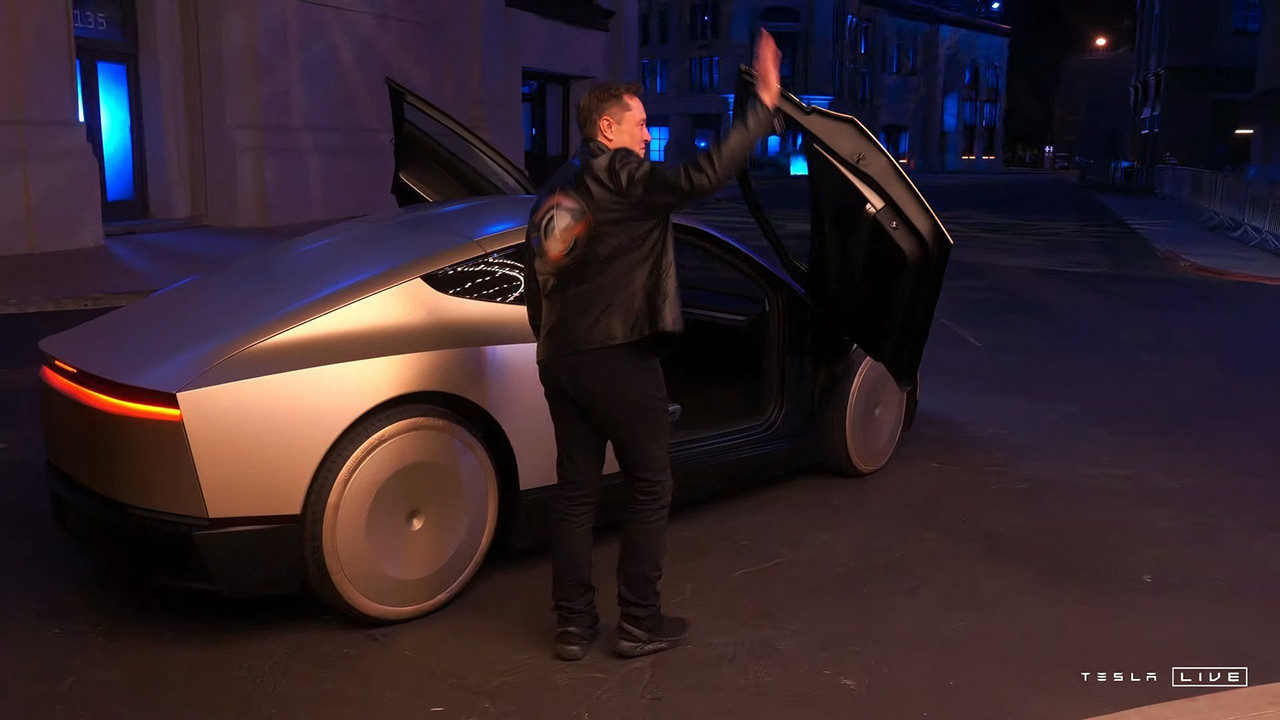 Tesla CEO'su Elon Musk, düzenlediği büyük bir etkinlikte, uzun süredir beklenen martı kanat kapılara sahip ve direksiyon simidi ile pedalları olmayan robotaksiyi tanıttı.