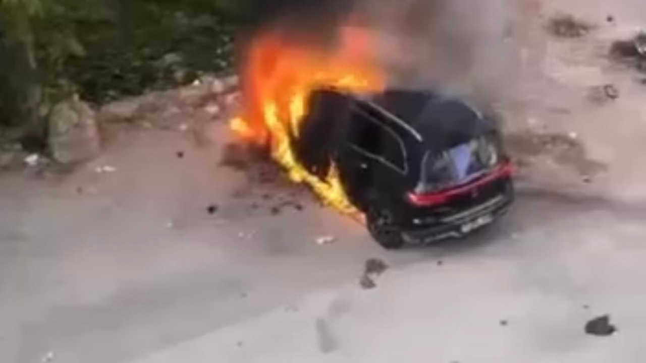 Bursa'nın Osmangazi ilçesinde bir kişi Mercedes marka lüks cipini park etti. Elektrikli araç bir süre sonra alev topuna döndü.
