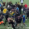 Sahada oyuncular birbirine tekme ve yumruklarla saldırdı. Kulüp yöneticileri, özel güvenlik ve polis ekipleri araya girerek olayları yatıştırmaya çalıştı.