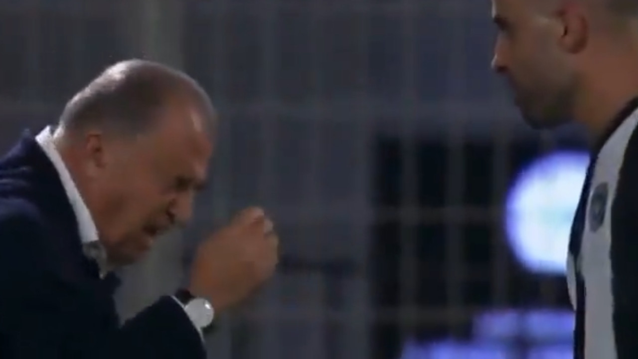 Kulübede Fatih Terim'den direktif alan deneyimli oyuncu, elindeki pet şişedeki suyu Terim'e fırlattı.