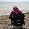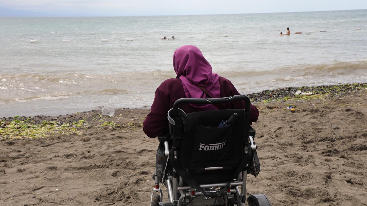 Belediye personelinin yardımıyla tekerlekli sandalyesiyle dalgaların kıyıya vurduğu noktaya götürülen Huriye Çelik, ayaklarını denize sokarak hayatındaki en büyük hayalini gerçekleştirdi.