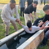 Geleneğe göre bayram namazına gelmeyen köy sakinleri tespit edilerek evlerinden alınıyor ve içi buz gibi suyla dolu oluğa yatırılıyor.