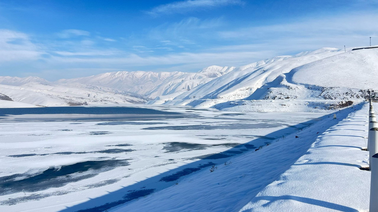 64 milyon metreküp su kapasiteli barajı gölünün yüzeyi yaklaşık 10 santimetre kalınlığında buzla kaplandı.