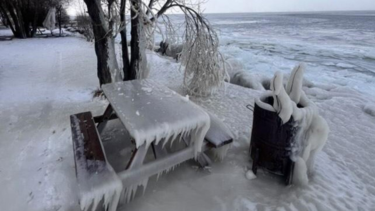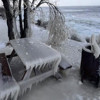 Gölün bir kısmında rüzgarın da etkisiyle kıyıya vuran dalgaların donması sonucu ağaçlarda ve banklarda ilginç görüntüler oluşturdu.