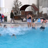 Aileler ve çocukları hava sıcaklığının 0-5 derece civarında seyrettiği, zaman zaman da kar yağışıyla birlikte sıfırın altına düştüğü günlerde termal havuzlara girip, tatilin keyfini çıkartıyor.