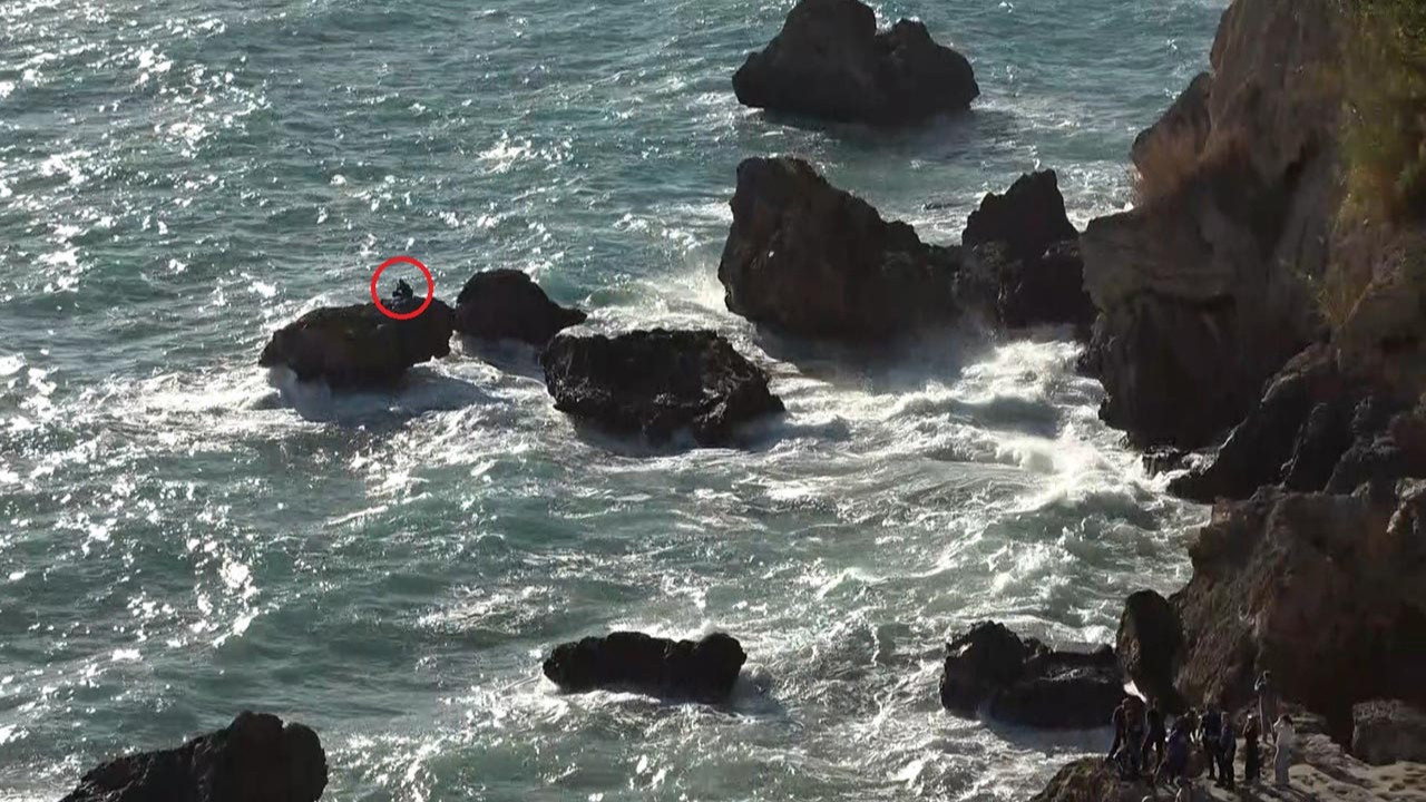 Y.Ö., kuvvetli rüzgarın etkisiyle büyüyen dalgalar nedeniyle kayalıklarda mahsur kaldı.