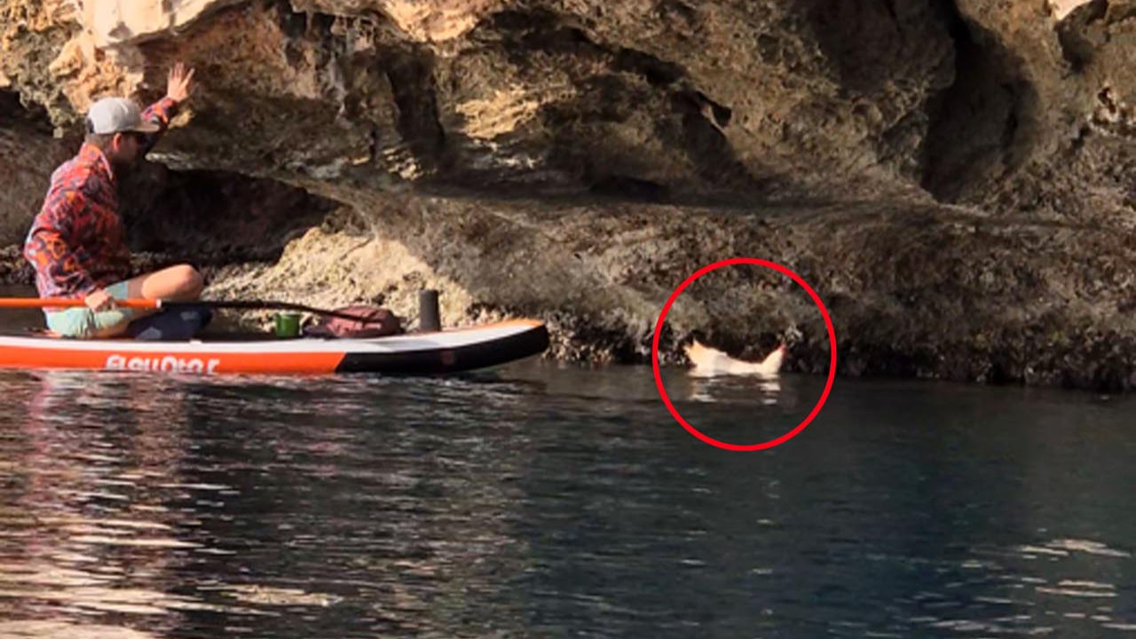Antalya'da son yıllarda popüler hale gelen sup board etkinliklerinde hem tur düzenleyen hem de eğitmenlik yapan Tahir Özden, 9 Ocak’ta arkadaşlarıyla birlikte denizde tura çıktı. Özden ve arkadaşları, kahve molası vermek için her zaman gittikleri noktada durduklarında, falezlerden yanlarına bir hayvanın düştüğünü fark etti.