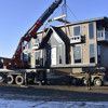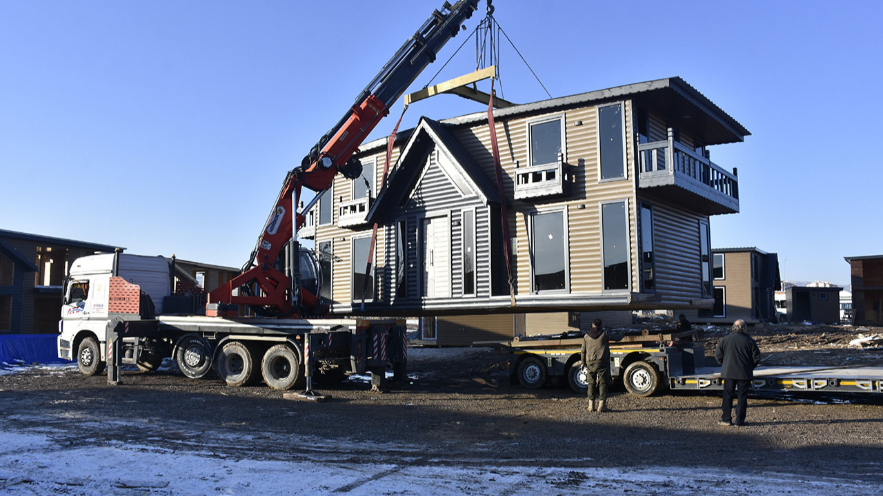 Yapımı tamamlanan evler ise TIR'lar ile gideceği bölgeye naklediliyor. Taşınma ve köprü geçişlerinde problem yaşanmaması için gideceği güzergahtaki yolların genişlik hesapları yapılarak üretilen evler, nakliye sırasındaki görüntüsüyle meraklıların da dikkatini çekiyor.