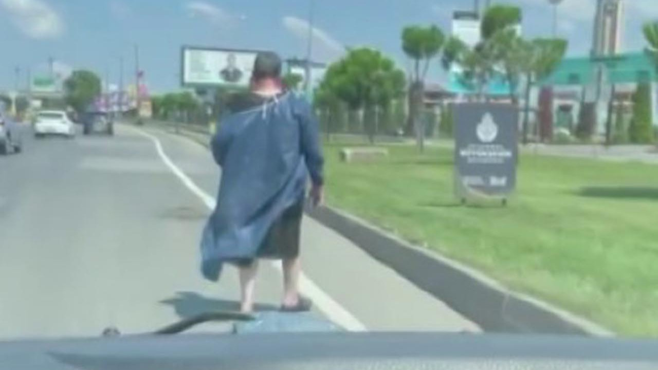 E-5'te şaşkına çeviren olay: Ameliyat önlüğüyle metrelerce yürüdü
