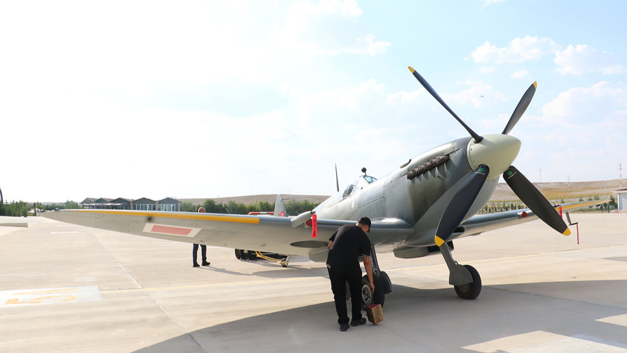 Spitfire Mk9 savaş uçağı, o dönem Türk Hava Kuvvetleri'nin kullandığı kare fors amblemleriyle donatıldı, daha sonra İngiltere'ye gönderildi.
