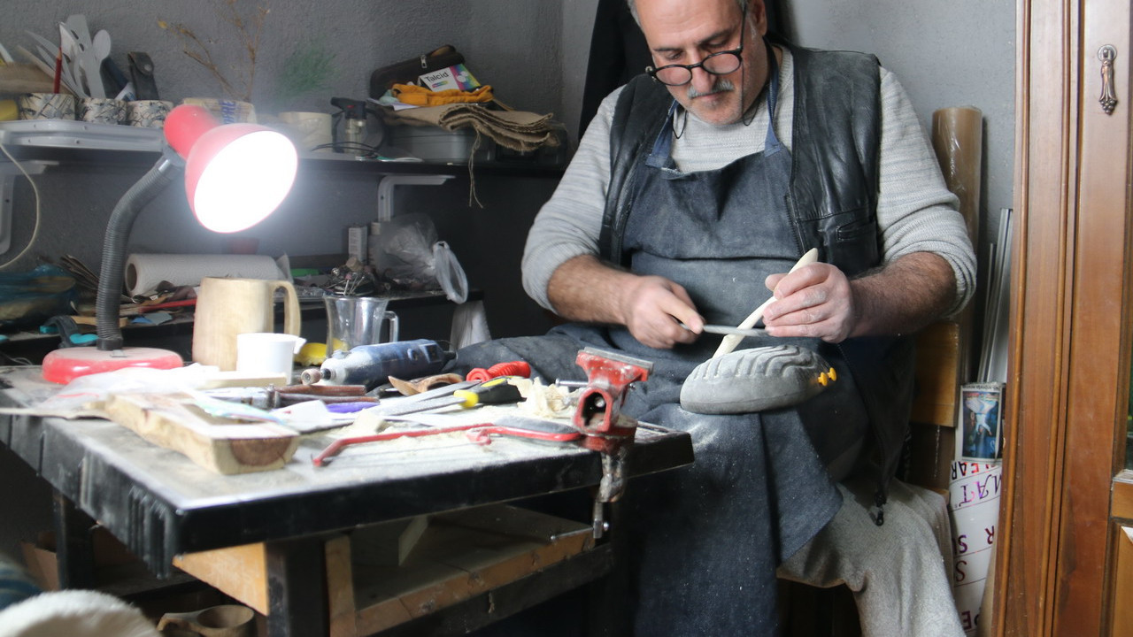 Kaşık ustası Osman Heper ile birlikte çalışmaya başlayan 58 yaşındaki Halit Yıldızeli, yaklaşık 2 yıldır tahta kaşık oyarak çıraklık yapıyor.