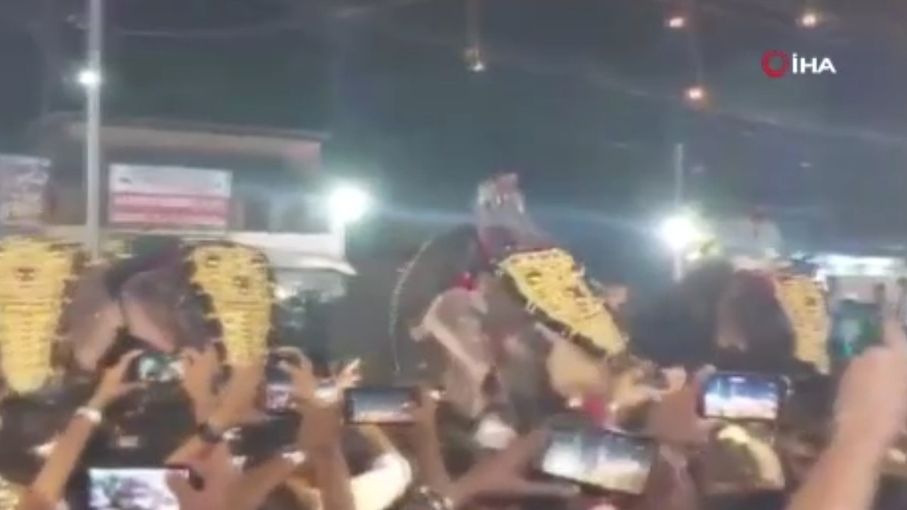 Hindistan’ın Kerala eyaletinde yer alan Malappuram kentinde düzenlenen Puthiyangadi Festivali kapsamında süslenen bir fil insanlara saldırdı.
