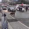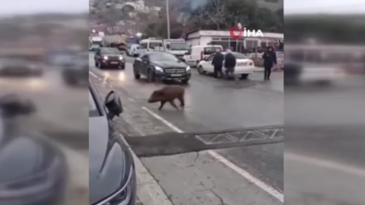 Önünü görmeyen domuz, sürücüleri zor durumda bıraktı. Sürücüler domuza çarpmamak için yavaşlarken, o anlar kameraya yansıdı.