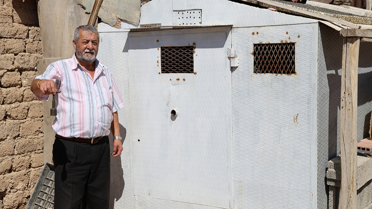 Tanesi 100 bin TL'yi bulan ve Süper Lig olarak adlandırdığı güvercinleri için çelik bir kümes yaptıran Veysel Yazıcı, kümesi 15 santimetrelik vida ile kilitliyor.